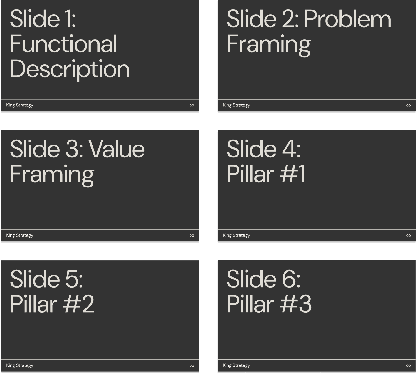 תקבלו מצגת פנימית ממוקדת עם המילים המדויקות שמתארות את המוצר שלכם, למי הוא מיועד, איזו בעיה הוא פותר, ומה הערך שהוא מספק. כל אחד בצוות - ממכירות, שיווק, ועד מוצר - יהיה מסונכרן סביב המסרים. התוצאה: פחות דיונים פנימיים, בהירות כלפי חוץ, והתקדמות צוותית מהירה יותר.